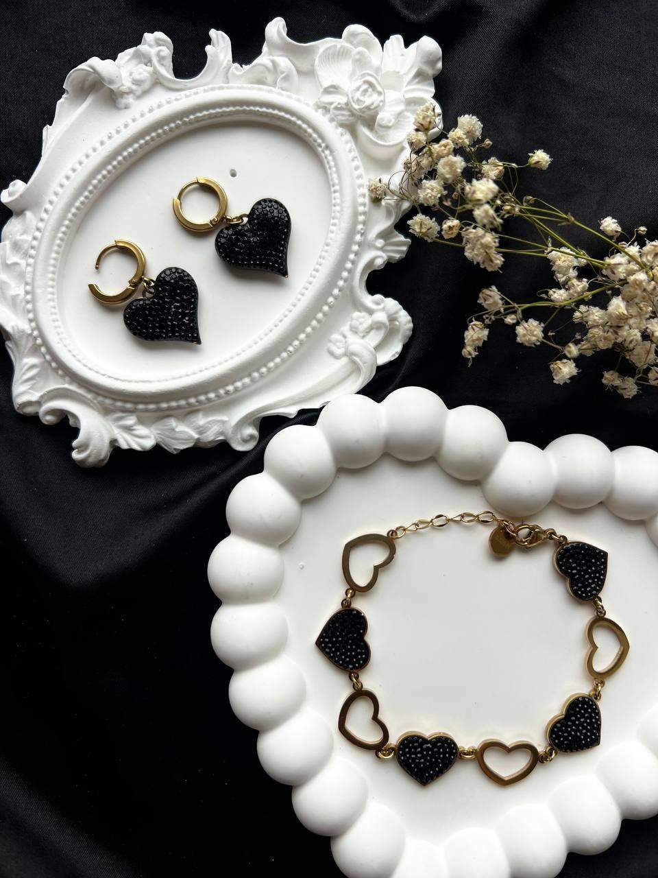 Komplet ze stali z czarnym serduszkiem
