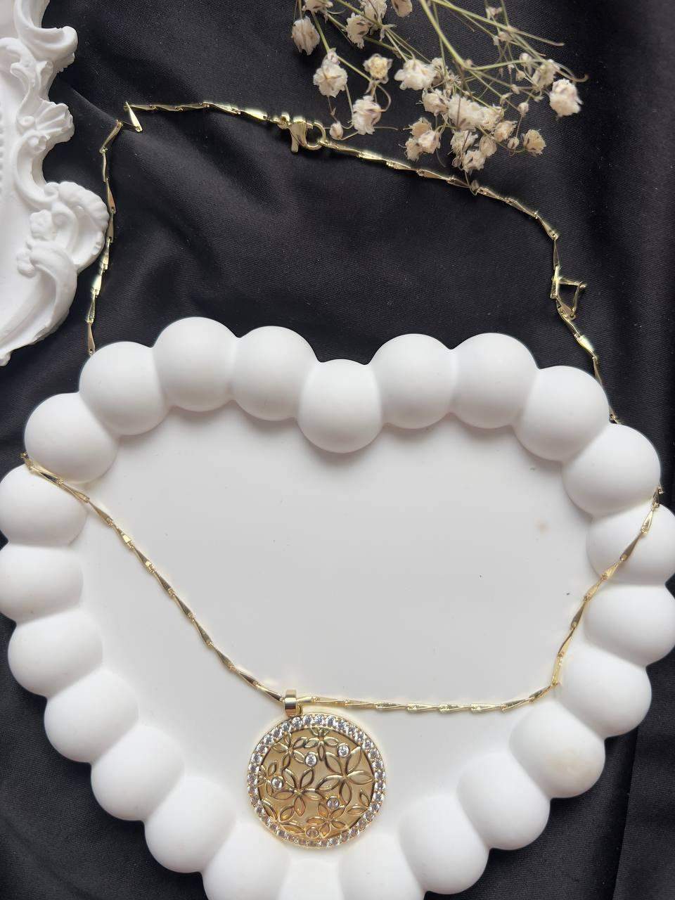 4. Naszyjnik ze stali „Kwiatowy Blask” z cyrkonią