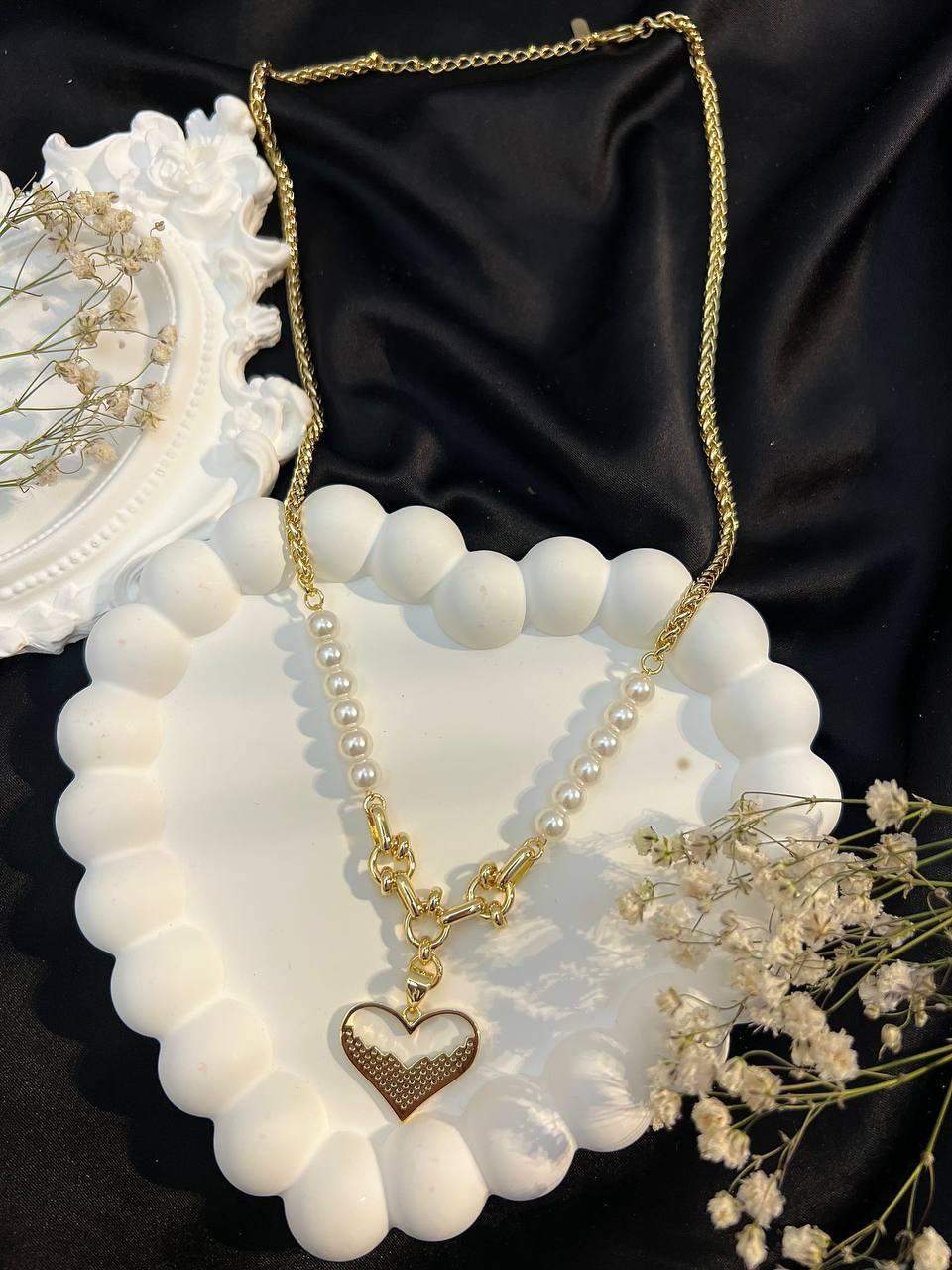 4. Naszyjnik ze stali „Romantyczne Serce” z perłami